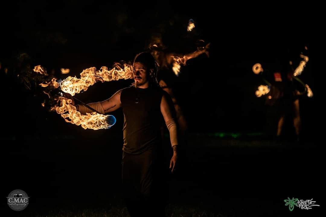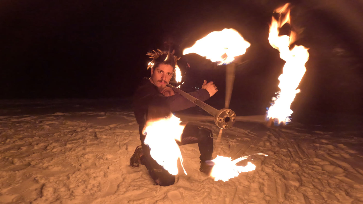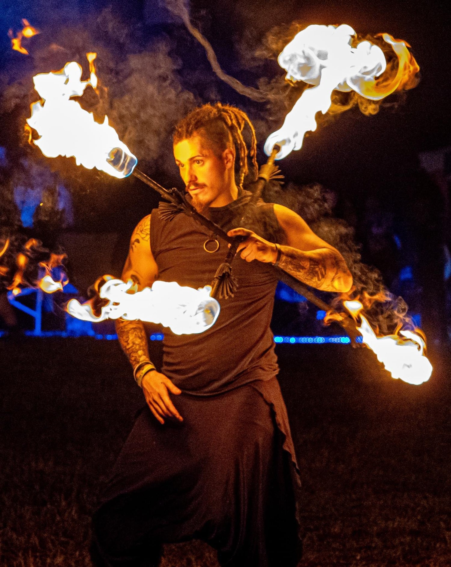 I have been practicing with fire fans on and off for about a year, and recently committed myself to deepening both my technical skills and flow with them. Fans offer a unique balance of strength and grace, combining fluid dance-like movements with intricate tech patterns. With five wicks on each fan, they create a powerful visual aesthetic—captivating audiences with striking lines of fire and mesmerizing trails