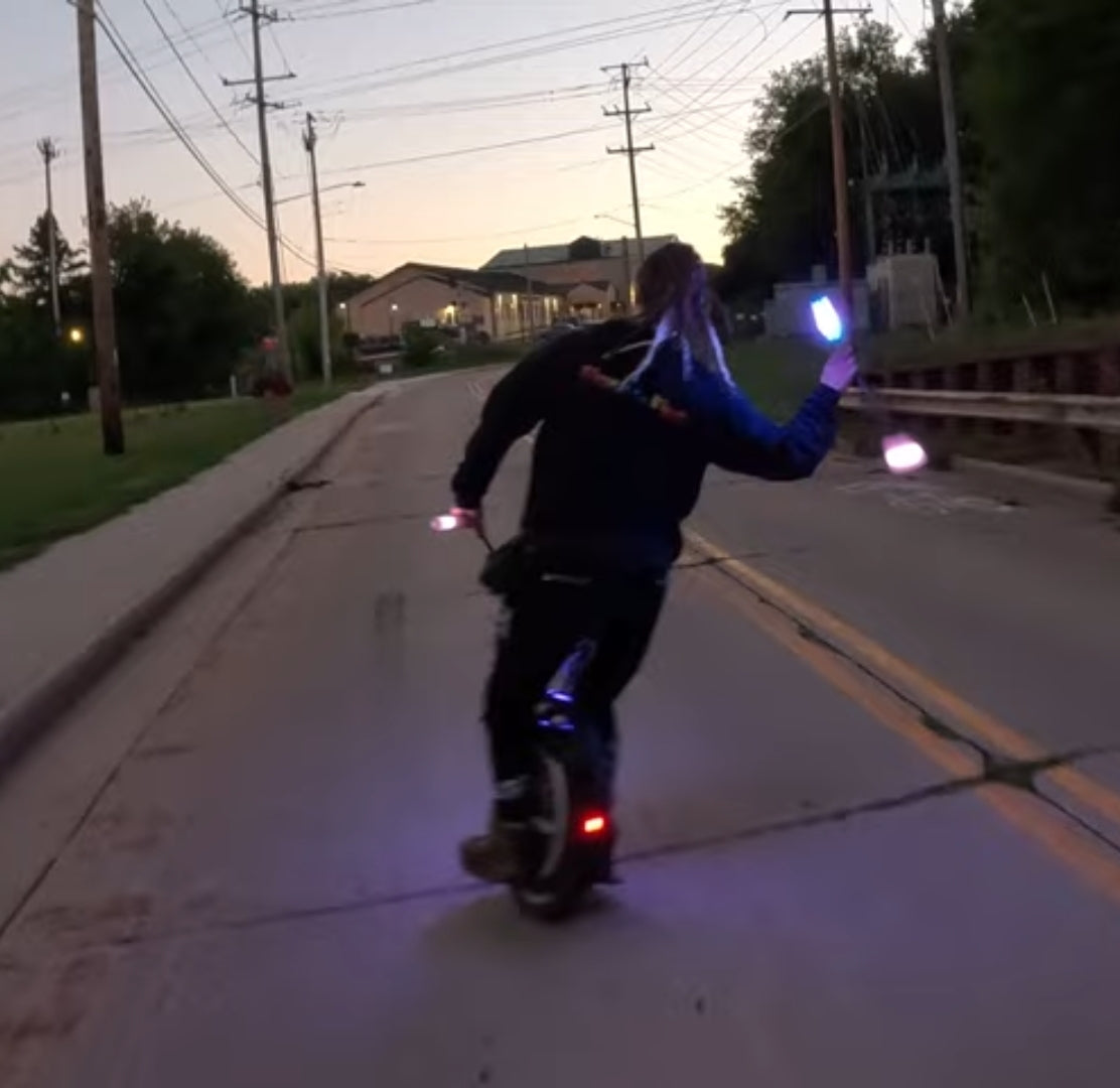 For the past three years, I've immersed myself in the exhilarating world of Electric Unicycle (EUC) riding. My journey has led me to master not only the art of riding with tricks like pirouettes and riding backward but also the fusion of various props with my EUC. Over the last two years, I've seamlessly integrated my passion for flow arts, spinning poi and dragon staff, and experimenting with fiery performances right on the wheel. Additionally, I've explored the exciting realm of juggling, staff manipulation, and buugeng play while riding my EUC. Join me as I unveil this captivating fusion of unicycle artistry and flow, a mesmerizing spectacle that pushes the boundaries of what's possible on a single wheel.